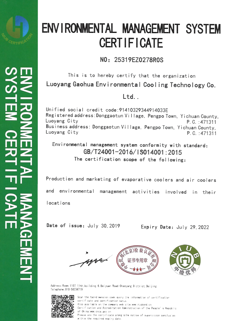 對洛陽高華環保冷卻科技有限公司而言,獲得ISO9001質量管理體系認證證書是又一個更高起點,企業將以此次ISO9001質量管理體系認證為契機,在未來對整體服務不斷變革與優化,為廣大用戶帶來更好的蒸發式冷卻(凝)設備、空冷器產品,以及售后服務,我們將一路前行,不忘初心!