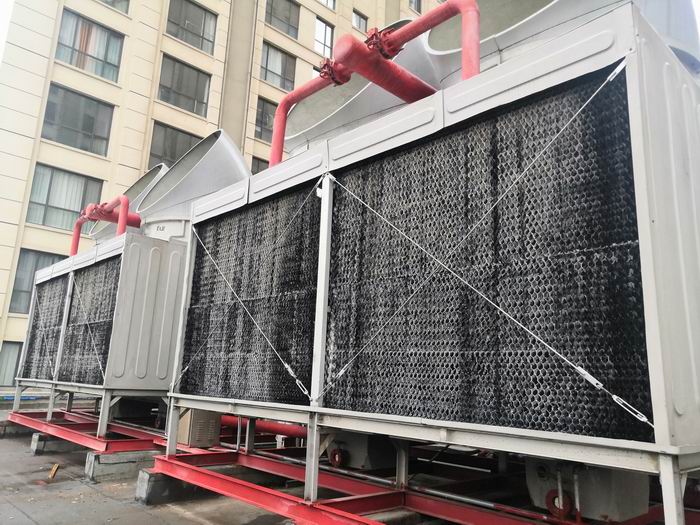 冷卻塔是水與空氣直接接觸進行熱交換的一種設備。機械冷卻塔它主要由風機、電機、填料、播水系統、塔身、水盤等組成。主要由在風機作用下的溫度比較低的空氣與填料中的水進行熱交換從而達到降低水溫的目的。水塔的構造及設計工況在每個廠家產品說明書上均有注明,而我們現在冷卻塔循環流量采用的水噸為單位是國際上比較常用的單位,且冷卻塔在選型上應留有20%左右的余量。